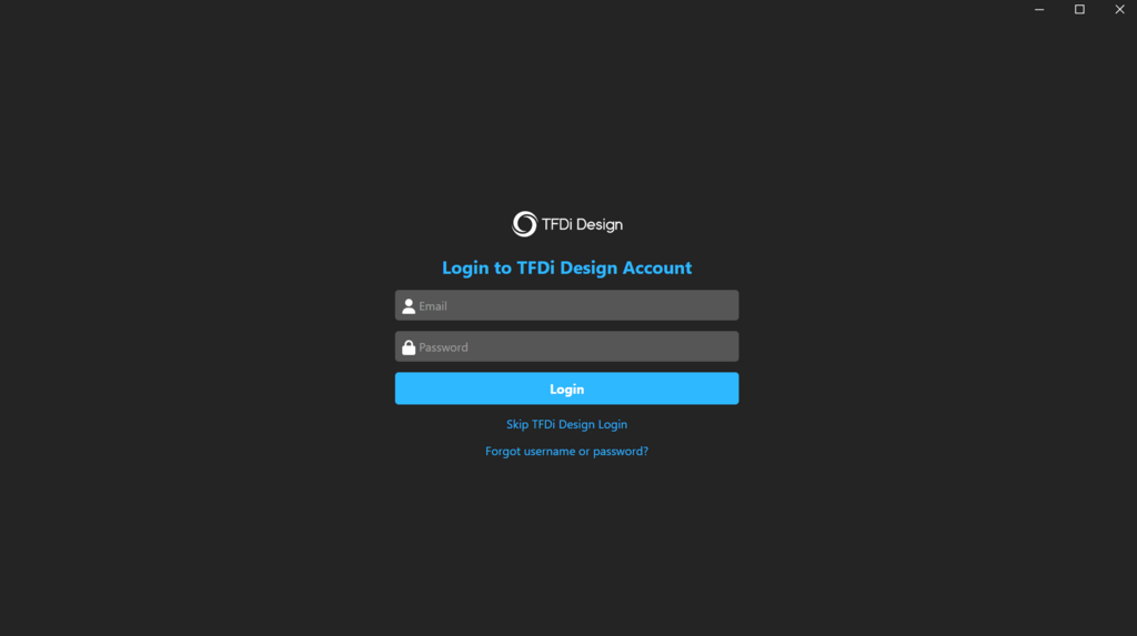 Make sure once on this screen, you click the option "Skip TFDi Design Login".